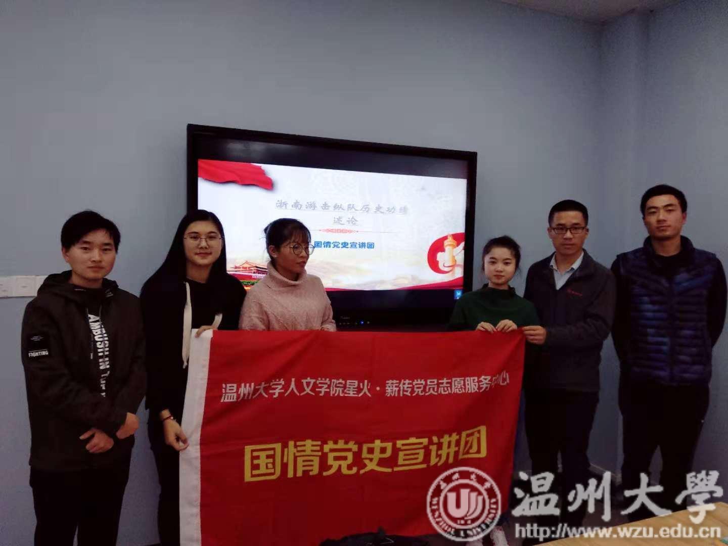 2018年11月23日晚6点,吃瓜网 “星火·薪传”党员志愿服务中心之国情党史宣讲团携手第二党支部于北校区外语楼221党员之家会议室举办了纪念浙南游击纵队成立70周年“永远的丰碑,不朽的功绩”主题宣讲活动,活动由学生第二党支部书记陈赛君主持,支部全体党员同志参加了本次活动。
