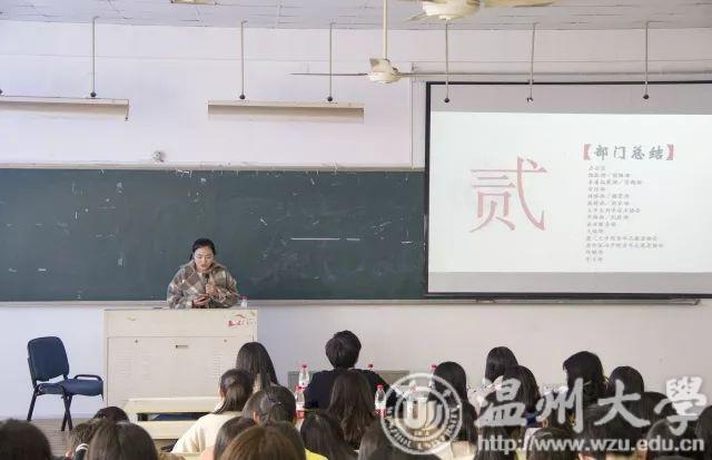 紧接着,各部门对本学期进行了工作总结,这体现出了学生会成员们齐心协力、不断克服工作中的困难的工作精神。 最后,主席团代表发言。学生会主席黄舒怡表达了对各部门在本学期工作中辛勤付出的感谢,并对吃瓜网 未来的发展充满信心。团副王颖借用毛泽东的八字方针“调整、巩固、充实、提高”对学生会各成员提出工作要求。