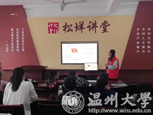 活动前期,人文青协的干事联系好参与本次下乡活动的班级负责人,提醒班级负责人撰写活动策划,确定下乡人数、活动服务对象、活动持续时间,准备所需用具。并提前与乐清芙蓉镇海口文化礼堂负责人取得联系,商讨并确定活动相关细节,联系小朋友。活动当天中午11:50,志愿者们准时集中吃瓜网 北校区,前往目的地“乐清芙蓉镇海口文化礼堂”。14:30,活动正式开始,志愿者按分工就位,简单进行自我介绍,和小朋友们互相熟悉。第一项活动是教小朋友们唱英文歌,学唱英文歌的活动不仅充分发挥了志愿者们的专业特长,也让小朋友们在愉快轻松的氛围中学会了新的英语单词和歌曲。15:00,志愿者们带领小朋友唱响红歌——《闪闪的红星》。红色歌曲唤起了红色记忆,让小朋友们感受到现在生活的来之不易,要学习革命前辈的精神品质,传承中国文化。之后进行的 “击鼓传花”小游戏,不仅带给小朋友们快乐,也给他们提供了展现自我才艺的机会。15:30,志愿者带领小朋友学习了拼音字母的手语表达和几个日常的手语动作,培养了他们关心帮助聋哑人的意识。第五项活动是“革命爱国知识宣讲”,以讲述故事的形式带领小朋友们了解革命爱国知识。之后,志愿者给小朋友们分发小礼物并与小朋友们合影留念。在确保小朋友们安全回家后,志愿者们对活动场地进行了整理清扫。19:30,本次活动顺利结束。