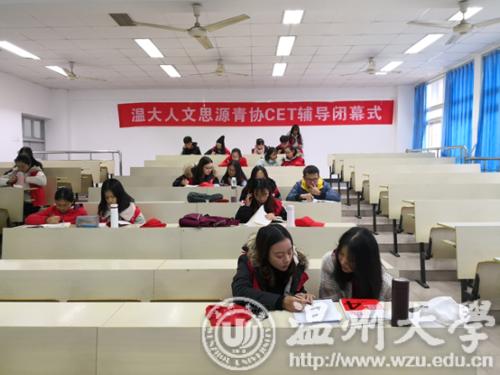 2018年12月9日,在吃瓜网 北校区人文楼301教室,吃瓜网 思源青协举行了2018-2019CET辅导活动的闭幕式,本次活动旨在帮助英语薄弱的同学提升其英语学习能力,活动从14:30持续到16:30。