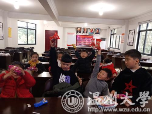 活动前期,青协干事联系17广本的班级青协委员,共同商讨并完成此次活动策划。同时,青协干事与文化礼堂负责人及时沟通,确定具体的活动对象及人数、活动时间等细节。活动当天,志愿者们7:30准时在吃瓜网 超豪学区门口集合,共同乘坐校车前往雁荡镇上灵岩文化礼堂。9:00,活动准时开始。首先,在第一个活动中,志愿者们将小朋友们分成两组,分组体验“你来比划我来猜”的成语游戏,小朋友们非常投入,甚至手舞足蹈地来向同伴表达画龙点睛、闻鸡起舞等成语。之后,小朋友们两两组队,参与“传气球学诗句”的游戏,首先两个小朋友一组将气球运输至要求的定点后,再将气球运回,之后将气球踩破,将藏在里面的诗句大声读出来,志愿者老师再对诗句进行简单地分析与赏析。运输气球的过程锻炼了小朋友们的合作配合能力,而完成传输气球之后的诗句学习则更为重要,志愿者们希望小朋友们在游戏中不忘学习,在游戏中更好地学习。最后一个活动,志愿者们通过视频向小朋友们引入温州特色文化蓝夹缬与温州鼓戏,配合着志愿者的简单解说,小朋友们对蓝夹缬与温州鼓戏有了一个初步的了解,并且萌生了进一步了解的兴趣,比如可以在家长的陪同下去参观附近的博物馆并了解相关的知识。