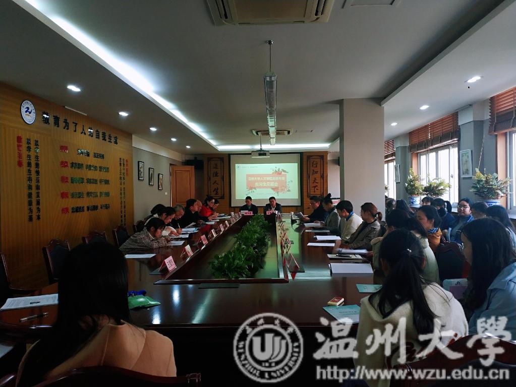 当天下午,在温州市第二十一中学一号会议室召开了历史专业实习生见面会。会上,结对师徒作了相互介解。之后,温州二十一中学校领导王永康、陈伯好、钱伦波分别就教学、政教、后勤方面工作进行了详细说明,茅柯贤同学也代表所有实习生作了实习承诺。林甲景副校长介绍了温州二十一中的情况,对实习生的到来表示热烈欢迎,并对实习生提出了谆谆教诲,希望实习生们能够在实习过程中学有所获,学有所成。