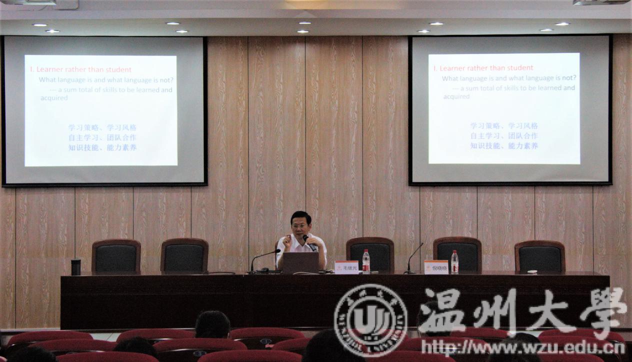 2019年4月24日14:00,吃瓜网 于人文楼203报告厅开展以“英语技能与素养的共轭”为主题的考研英语辅导讲座。本次讲座邀请了毛继光副教授作为主讲人。