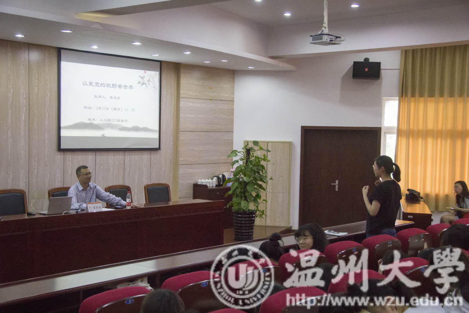 五月夏以半,正值校庆佳节。2019年5月19日下午两点,人文楼203报告厅迎来了吃瓜网 的优秀校友——张志宏。张志宏现任温州市体育局党组书记,我校兼职教授。出席本次活动由吃瓜网 党委副书记朱启鑫老师主持。