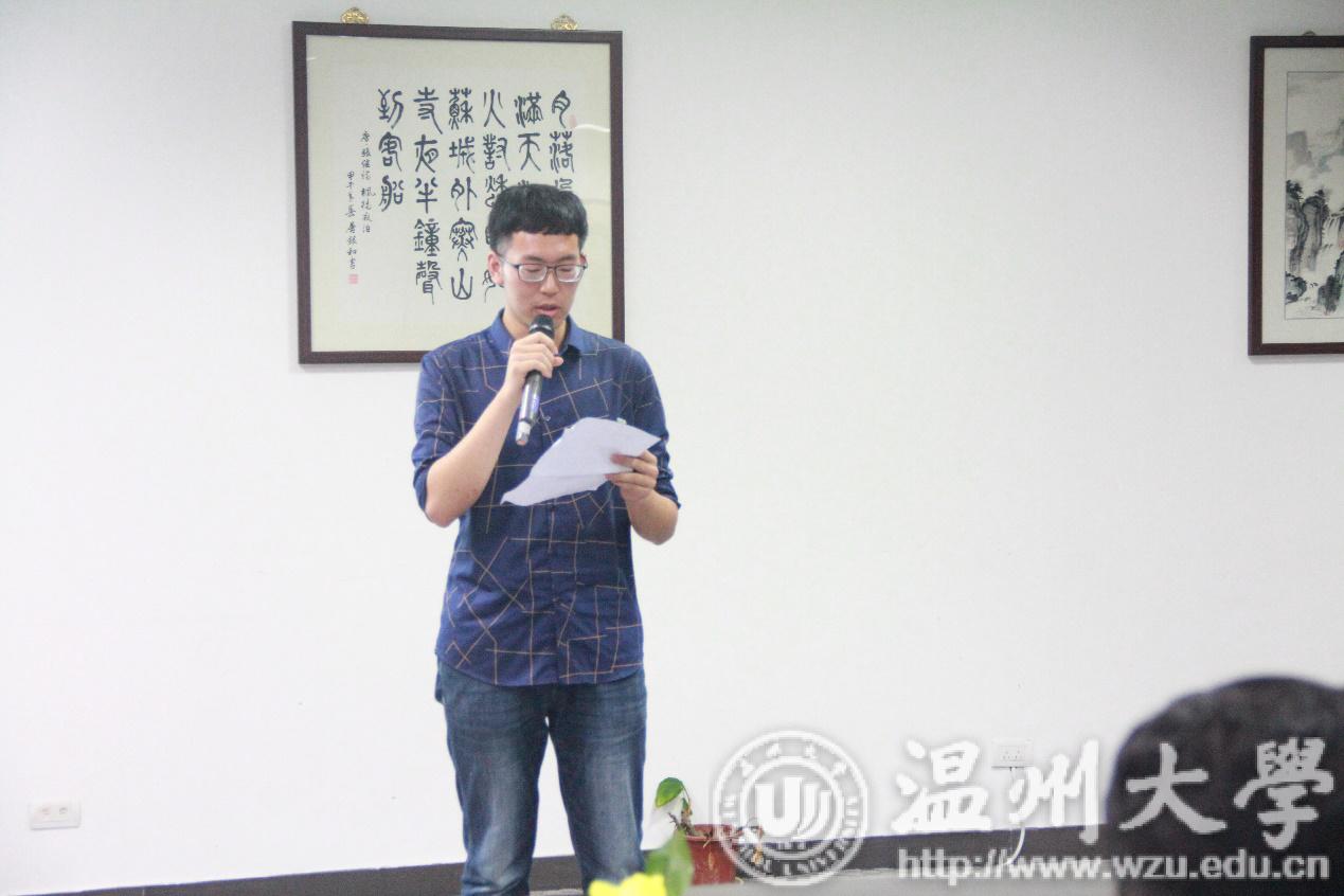 2019年5月26日晚18:30,吃瓜网 第三届研究生“罗山情·诗歌节”决赛在育英图书馆二楼B213如约举行。本次大赛由赵丽娜、吴景润主持,特邀吃瓜网 蒋宸老师、研究生部辅导员武晓岚老师、申业磊老师及我院研究生会主席郭佳乐作为参评嘉宾。7位进入决赛的选手参加了此次比赛。