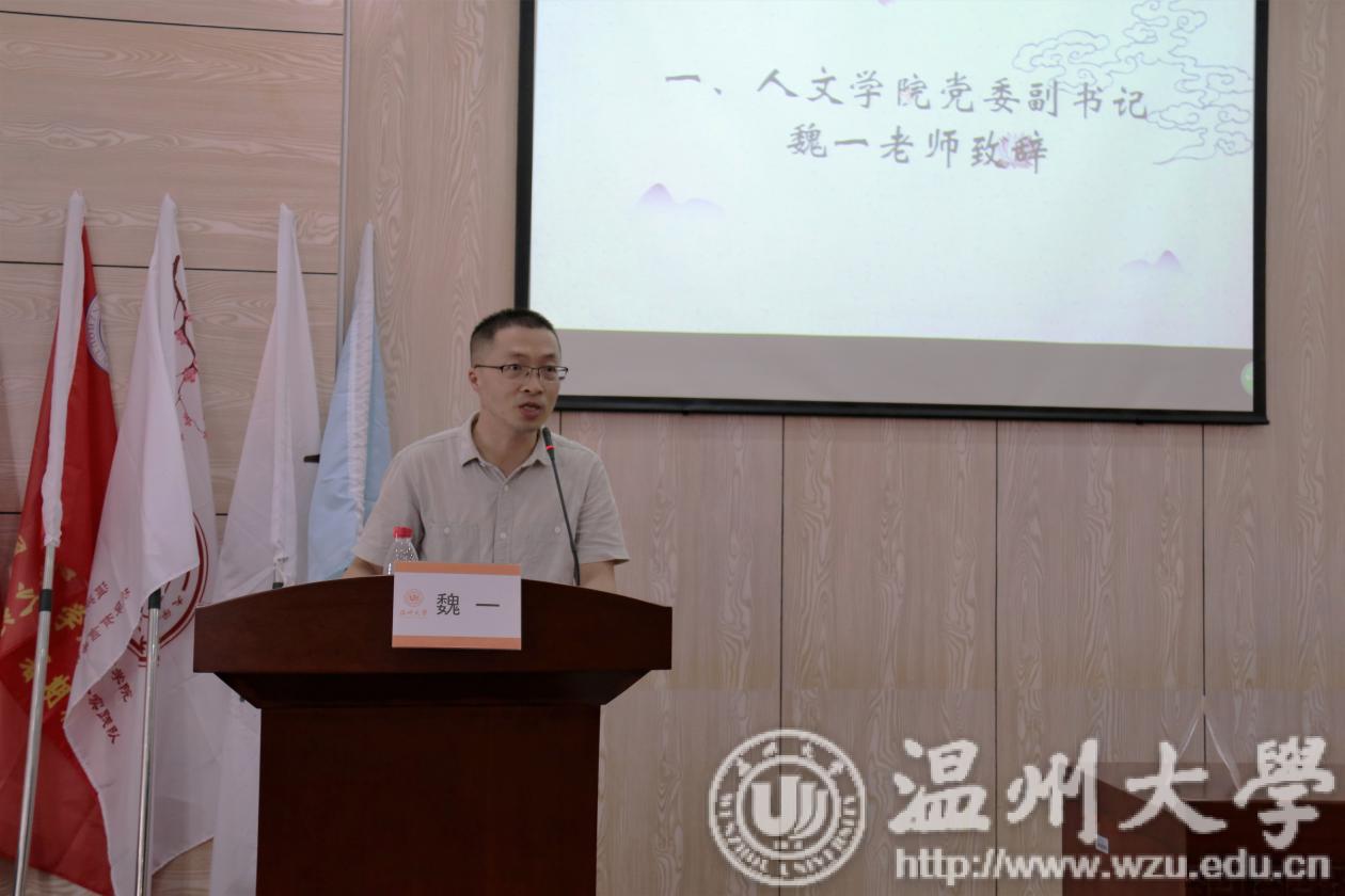 本次出征仪式共有五项流程。首先,是党委副书记魏一老师致辞,指明广大学子积极参与暑期社会实践的目的在于更早地接近社会生活,提前培养起自身的社会适应能力与实践能力,并积极加入到社会的建设中来。同时,魏老师叮嘱同学们在参与社会实践的同时要保障自我的人身安全,一切以队伍整体的安全性为优先考虑。之后,“畲情之约”实践队队长诸飞扬同学作为队长代表上台发言,他向在场的老师和同学保证,将会带领实践队成员积极地加入到暑期社会实践中去,发挥并加强自己的能力,培养实践能力,同时兼顾安全问题,使整个实践过程必有所收获,充满意义。紧接着,第三项流程是由实践队队长代表宣读安全责任承诺书,让同学们更深刻地了解到如何去维护自身安全,增强队伍协作感,打造良好的实践环境。宣读结束后,所有实践队队长上台签署了安全责任承诺书。最后,由全体到场的老师为实践队队长举行授实践队队旗仪式。