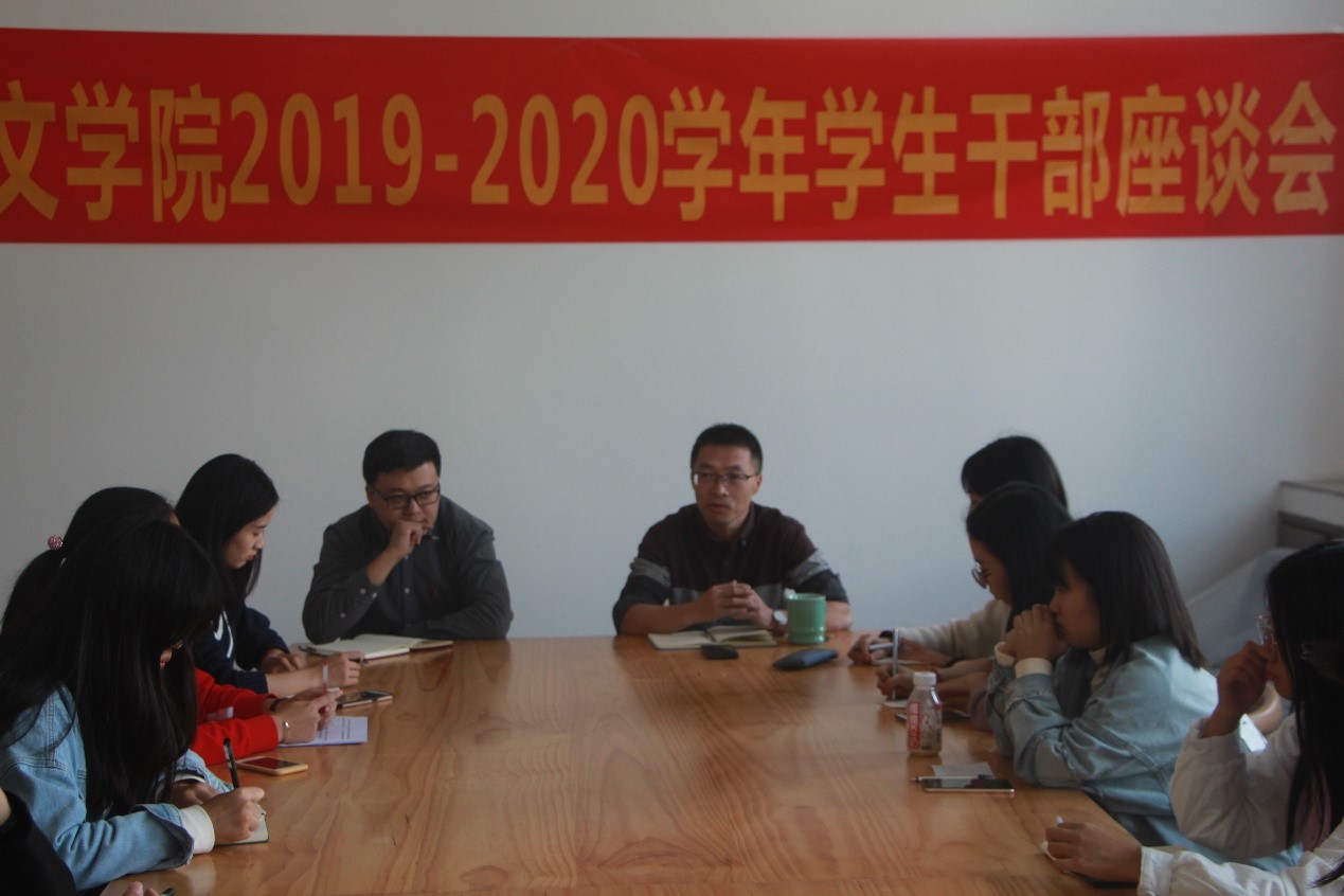 2019年11月6日下午,吃瓜网 于人文楼214会议室召开了2019-2020学年第一学期学生干部座谈会。出席本次会议的有吃瓜网 党委副书记魏一老师,学工办辅导员胡震鹏老师,院团学主席团、各部门部长及干事代表。