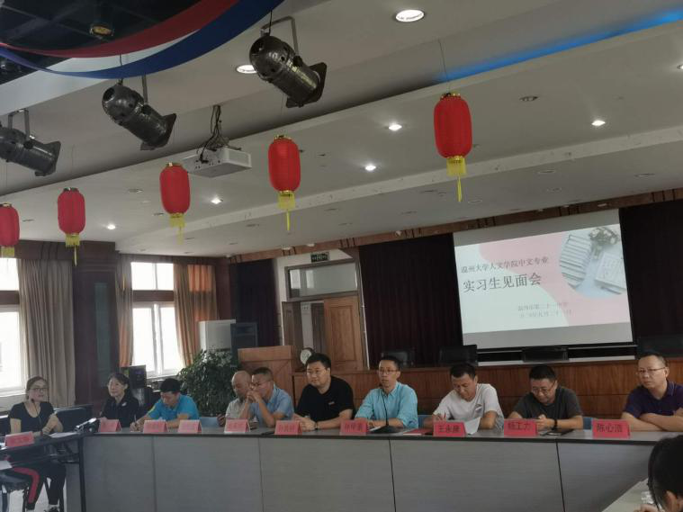 接着,温州市第二十一中学教务处主任王永康老师发表了讲话,王老师对于吃瓜网 实习生的到来表示热烈的欢迎,他向同学们介绍了温州市第二十一中学优秀的教学水平和一流的教学环境与设施,相信这会为实习的同学们带来有益的帮助,并对同学们提出了“教学求真,育人善美”的良好愿景。随后,学生处主任陈伯好老师向同学们提出了德育方面的要求,指出同学们在实习期间要实现从学生到教师的角色转换。紧接着,由总务处主任钱伦波老师给大家介绍了实习期间的后勤安排。继尔,副校长林甲景介绍了学校的基本情况,并对同学们接下来的实习生活提出了“心无旁骛、主动学习、展示自己”三点殷切期待。会议的最后,吃瓜网 孙良好院长对温州市第二十一中学校方和指导老师表达了由衷的感谢,并期望前来实习的同学们能够树立“品牌”意识,努力发挥大学所学的专业知识,认真向指导老师学习,用心在教学中传授文学的人性之美、人情之美。