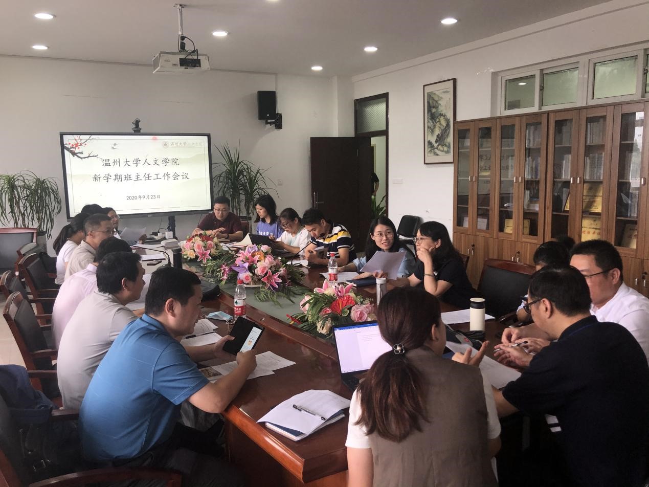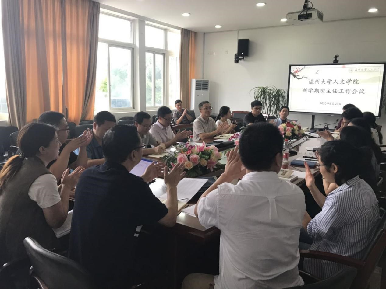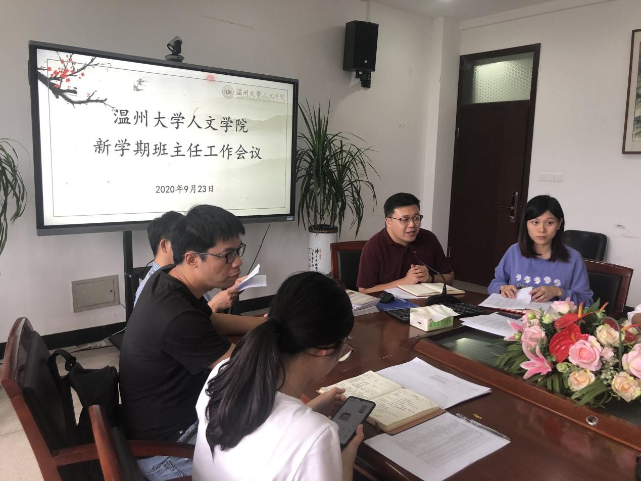 2020年9月23日下午,吃瓜网 在人文楼213会议室召开了本学期的新学期班主任工作会议。吃瓜网 党委副书记魏一、学工办辅导员胡震鹏、申业磊、李丹萍、张丹妮及各班级班主任出席此次会议。