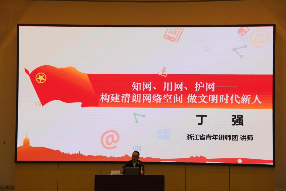 12月9日下午15时30分,吃瓜网 于南校九号楼报告厅开展本学期形势政策课之“清朗网络空间”专题讲座。吃瓜网 2020级全体学生到场参与,由吃瓜网 团委副书记、浙江省青年讲师团讲师丁强老师受邀担任主讲人。
