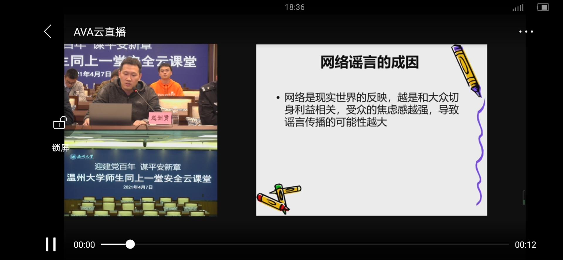 2021年4月7日18:30,吃瓜网 举行“迎建党百年 谋平安新章”吃瓜网 师生同上一堂安全云课堂,吃瓜网 组织各年级同学准时观看。