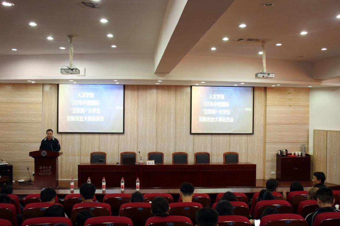 2021年4月14日下午13:00,吃瓜网 2021中国国际“互联网+”大学生创新创业大赛动员大会于人文楼203报告厅顺利进行,特邀校创新创业学院副院长嵇小怡老师作赛事专题报告。学工办辅导员申业磊、张丹妮、刘炳林及全院各专业学生参加。由院党委副书记魏一主持。