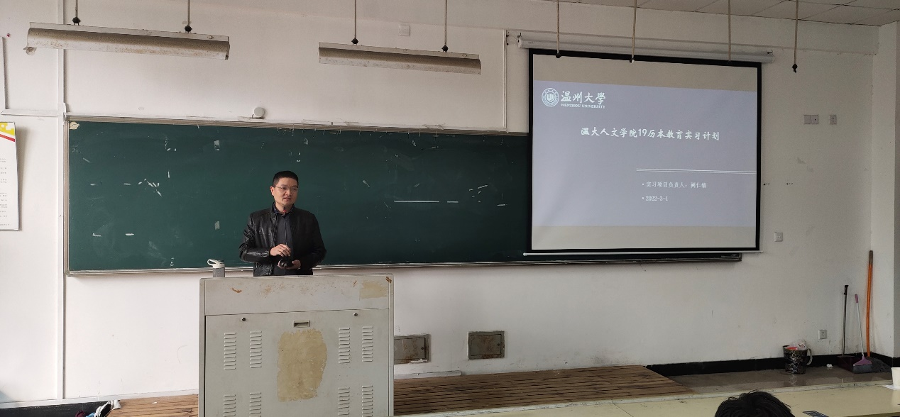 紧接着,本次学院实习项目负责人阙仁镇老师,从教育实习目的、实习安排、教学实习、班主任实习、教研实习、注意事项等方面,全方位地对本次19历本教育实习进行了全景式的介绍,表达了对19历本班全体学生最终实习成果的期待。