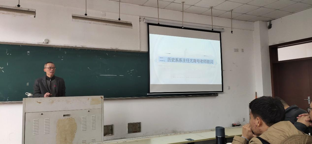 随后,由历史系尤育号主任发表讲话,从实习准备工作方面出发,高度肯定了本次教育实习。