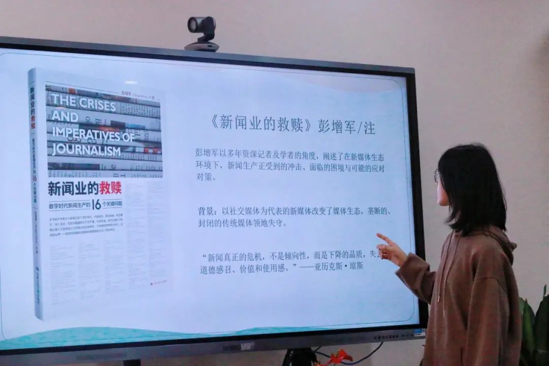 关于《新闻业的救赎》,黄昕同学认为,全书以一种积极的态度去看待新闻行业的未来,呼吁在新媒体环境下,新闻媒体应当明确自身立场与担当,认清自己肩上职责,以创新为基准,输出品质新闻,维护和树立媒体公信力,体现专业精神,以此迎来新闻业真正的救赎。正如亚历克斯·琼斯所说,“新闻真正的危机,不是倾向性,而是下降的品质,失去了道德感召、价值和使用感。”