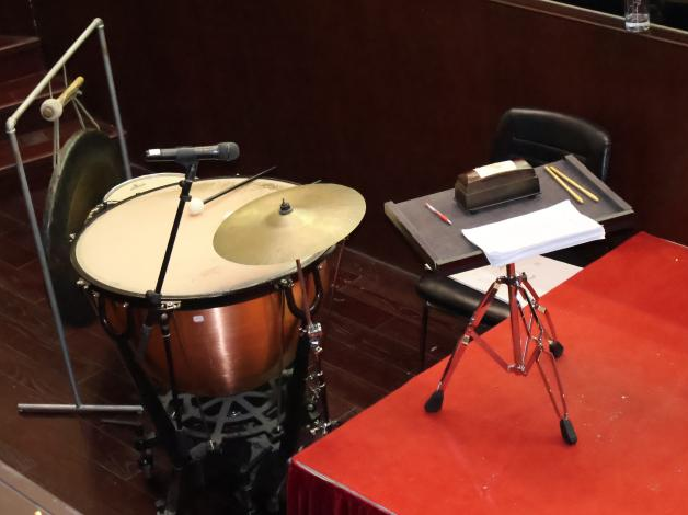 在观看排练之前,我们一行人有幸能够参观了温州市越剧院的演出后台。在这里,我们看到了各种各样戏曲的服化道以及剧团的乐队。据了解,越剧乐队在鼓板、越胡主奏下,分吹、拉、弹、打四部分,其配置根据剧目演出的需要扩大或压缩,但总的原则是“少而精”的组合和“一专多能”的人员配置。温州市越剧院的乐队可谓体制庞大,且都以年轻人为主。一台好戏需要演员和乐队的完美配合,我们不禁对这些幕后工作者肃然起敬。