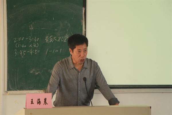 邀请吴静书记主持,由王海晨教授为2013级新生开展就大学时代应该如何度过的讲座。