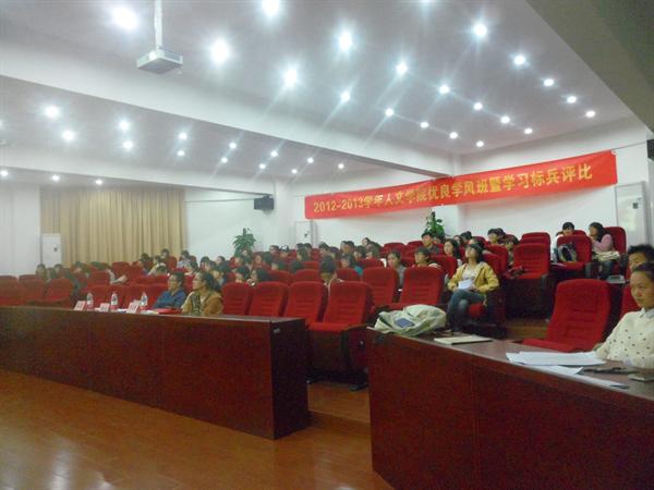 接下来,进行的是优良学风班级的评比。11级中文本科1班的班级代表为我们展现了温馨团结、积极向上的班级风貌,在英语、计算机等级考试上的成绩更令人瞩目。之后的11级中文本科2班的班级代表,用一张张成绩单与奖状证明了“我本二”,但学习和成绩却不“二”。