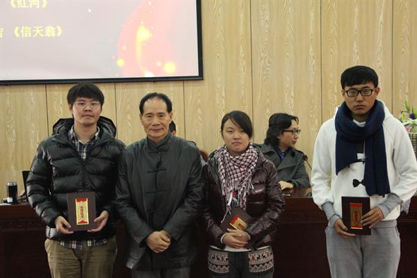 的杨吉等3位同学获得一等奖,34位同学分获二、三等奖和优秀奖。最后获奖同学代表王一莉与大家分享了自己的文学创作经历,同时表达了对前辈吴明华先生的深深敬意。