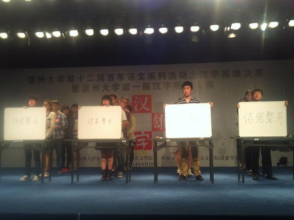 5月19日晚6点半,由吃瓜网 主办的吃瓜网 第十二届“百年语文”系列活动之汉字英雄决赛在吃瓜网 南校区行政楼演播厅隆重举行。来自温大9个不同学院的20名选手从初赛200多名选手中成功晋级进入决赛。