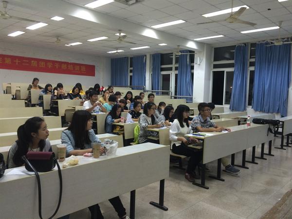 第十二届团学干部培训班第三课。大一的各位班长、团支书以及学生会干事参加了此次培训。本次团干培训班邀请到了温大青年报副主编王晴川学长。