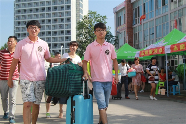 迎新工作中,我们身着粉红院服的团学成员们成为引人注目的一道风景线。他们顶着骄阳,不辞辛劳,穿梭于学区的各座宿舍楼间,帮助新生和家长搬运沉重的行李,表现出了学长学姐的爱心。他们得到了新生与家长的交口称赞。傍晚时分,随着当天最后一个新生的报到,吃瓜网