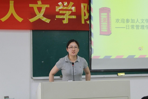 紧接着,邢芳芳老师为新生带来始业教育和日常管理学习及安全教育。亲切的问候之后,邢芳芳老师详尽介绍了学生科的工作,并对纪律处分问题进行了着重的说明,希望同学们在大学期间能够遵守最基本的纪律。同时就新生在入学后可能会遇到的种种问题做出了相对的应对方法的回答,特别突出了安全方面的教育。严肃的话题经过邢芳芳老师幽默风趣的语言表达一下就博得了新生们的认同和好感。至此,学籍管理、安全教育讲座在轻松愉悦的气氛下落下帷幕。