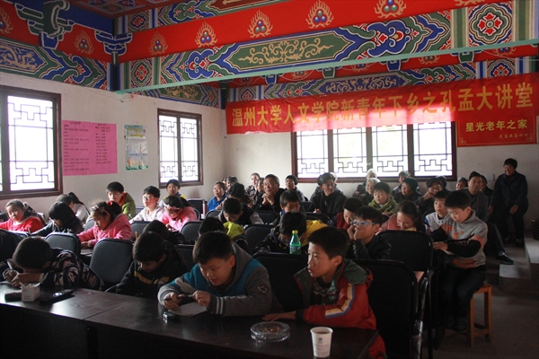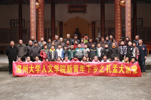 组织开展了“新青年下乡”活动,其中一部分同学负责对接乐清市筋竹村,在本村文化礼堂举办了“孔孟之道”讲座,主讲人为吃瓜网