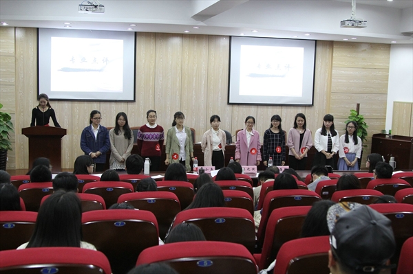 最后是颁奖环节,本次比赛共设一、二、三等奖和 “最佳风采奖”。其中刘璐同学获得一等奖,黄聪慧,朱琦两位同学获得二等奖,柴苗,章思思,李钰阳三位同学获得三等奖,李扬帆同学获得最佳风采奖。评委老师依次为获奖选手颁奖,在激昂的音乐和热烈的掌声中,本次比赛落下帷幕。