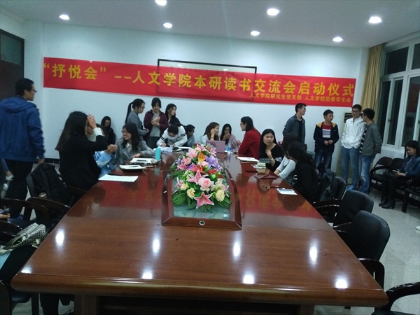 活动启动仪式现场气氛活跃,本科生与研究生之间讨论热烈,本次活动分为三个环节:首先主持人叶慧涓对“抒悦会”活动做简单介绍,包括活动举办的意义(加强研究生与本科生的交流,督促大家养成自觉的阅读习惯,营造良好的阅读氛围)、活动内容及安排。叶慧涓解说道“抒悦会”共分为四个小组:?古代方向组、‚现当代方向组、ƒ外国方向组、④考研帮扶组,大家可根据自己的需求与兴趣自愿参加。其次,读书会各小组组长发言,介绍分小组具体情况。四个小组的组长都先后对其小组名称--古书古香、海之微瓯、拿来社、翰林会的由来、小组成员、小组特点以及小组活动组织方式进行了详细的说明。
