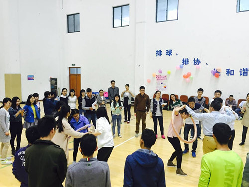“嗨起来,更青春”活动设计了“扯龙尾”、“心有灵犀”、“两人背部夹气球”、“传呼啦圈”、“知识问答游戏”五个游戏,参与的同学灵活组为四人队,并自由选择参与项目,裁判根据游戏完成情况给定分数,以最终累积分数排定名次。“扯龙尾”游戏开始,现场的气氛瞬间火爆起来,十余只“长龙”在赛场上斗智斗勇;“心有灵犀”考验着队员们的智慧;“两人背部夹气球”需要队员的默契配合,“传呼啦圈”更考验着小组成员之间的团结协作;“知识问答游戏”则是一场对体力和智力的双重考验的较量。经过三个小时的斗智斗勇,“小公主”和“路人甲”队并列获得第三名,“大白队”获得比赛的季军,冠军被“青春啊洋溢”队摘获。