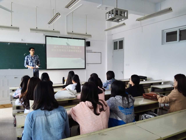 此次培训以刘纪峰老师精彩的开场白开始,共分详解赛事,指导规划书撰写技巧及赛前动员三个方面,历时近一个小时。会初,决赛选手们认真听取了刘纪峰老师对于本次职业生涯规划大赛的详解,刘老师用简明扼要的几个要点概括阐述了本次大赛的目的、意义、及主要流程。其后,在决赛选手的热烈掌声中,邢芳芳老师上台为选手们讲解了如何撰写职业规划类文本,邢老师以其丰富的职业生涯规划指导经验和丰厚的实践知识储备,为在场的14名决赛选手上了一堂生动的赛前培训指导课程,成功地为选手们进一步优化参赛作品点明了方向,指引了道标。最后,刘纪峰老师再次上台,向在场的选手致以了由衷的祝愿和期盼,鼓舞了在场选手和主办方的士气,同时刘老师也预祝本次大赛得以的圆满成功。