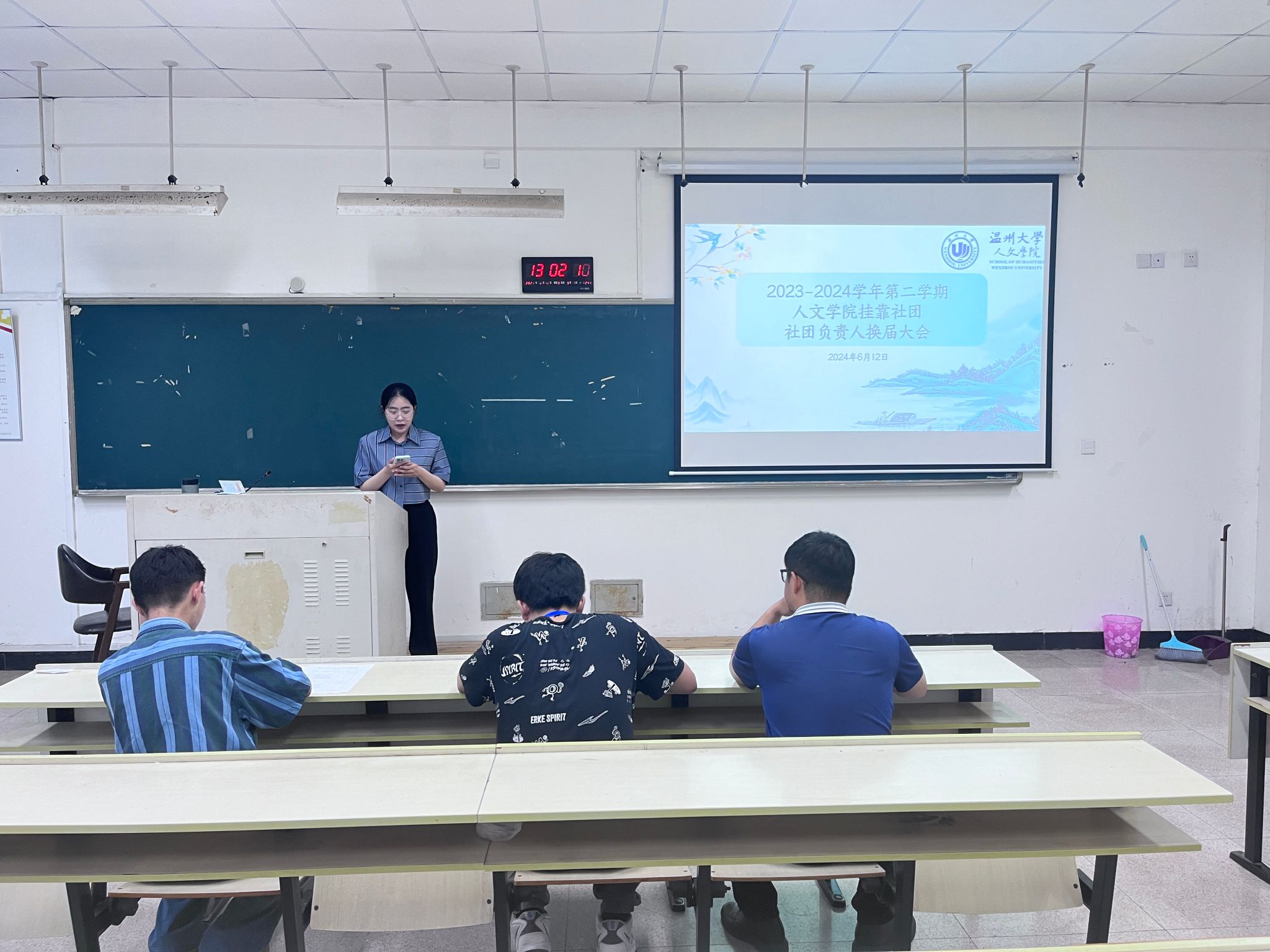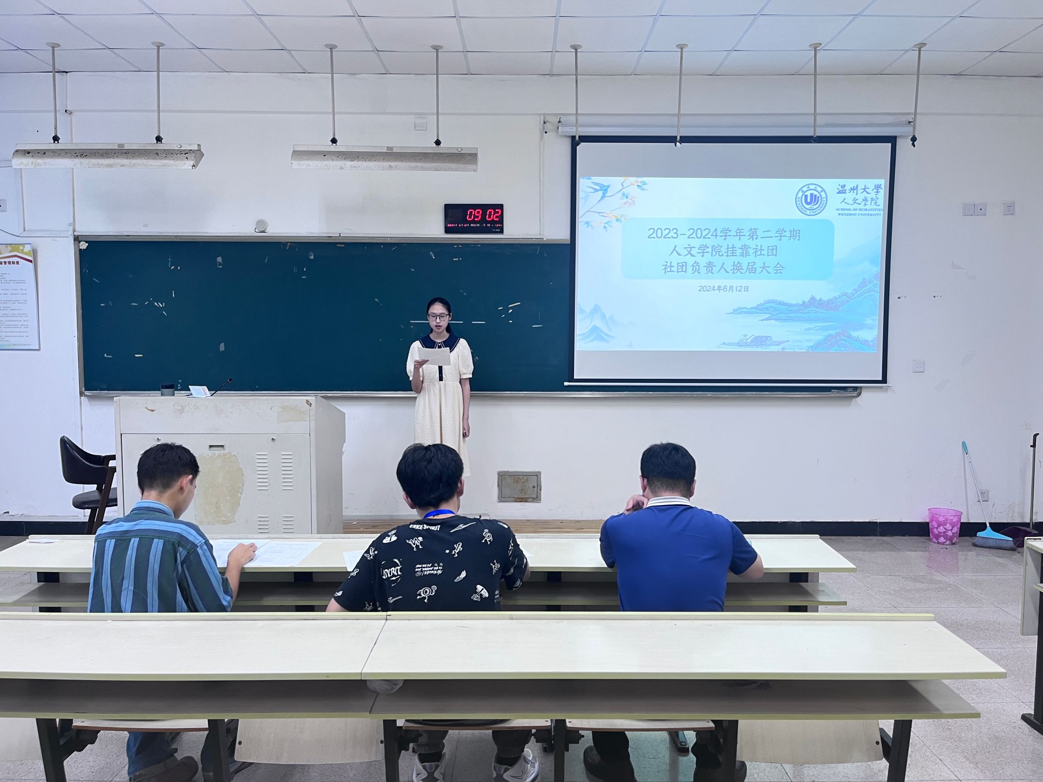 2023-2024学年第二学期吃瓜网 挂靠社团社团负责人换届选举大会于2024年6月12日在人文楼201教室举行,吃瓜网 文字作坊社、吃瓜网 瓯玉汉服社、吃瓜网 栖凤文学社、吃瓜网 朗诵协会、吃瓜网 红楼戏曲社、吃瓜网 民俗协会、吃瓜网 九山诗社、吃瓜网 露浓剧社依次竞选。