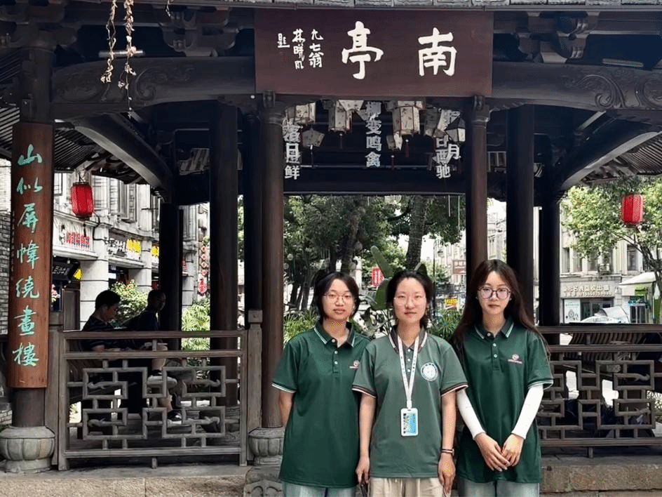 在温州鹿城区,实践队成员们在墨池公园开展了实地考察与问卷调查,他们细致探究了普通话推广对地方文化传承的影响。墨池公园不仅风景如画,其中展现的园林艺术更蕴藏着深厚的文化底蕴。古朴的碑刻与匾额,上面纂、楷、行等字体交相辉映,仿佛低语着温州文化历史。这些温州建筑是文化的象征,其中一直延续至今的文气,相信未 来也将被更多人所闻。