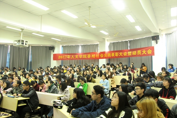 于人文楼101召开2017暑期社会实践表彰大会暨动员大会,党总支副书记朱启鑫老师、学生科邢芳芳老师及团委学生会主席团出席本次大会,全体大一新生积极参与。