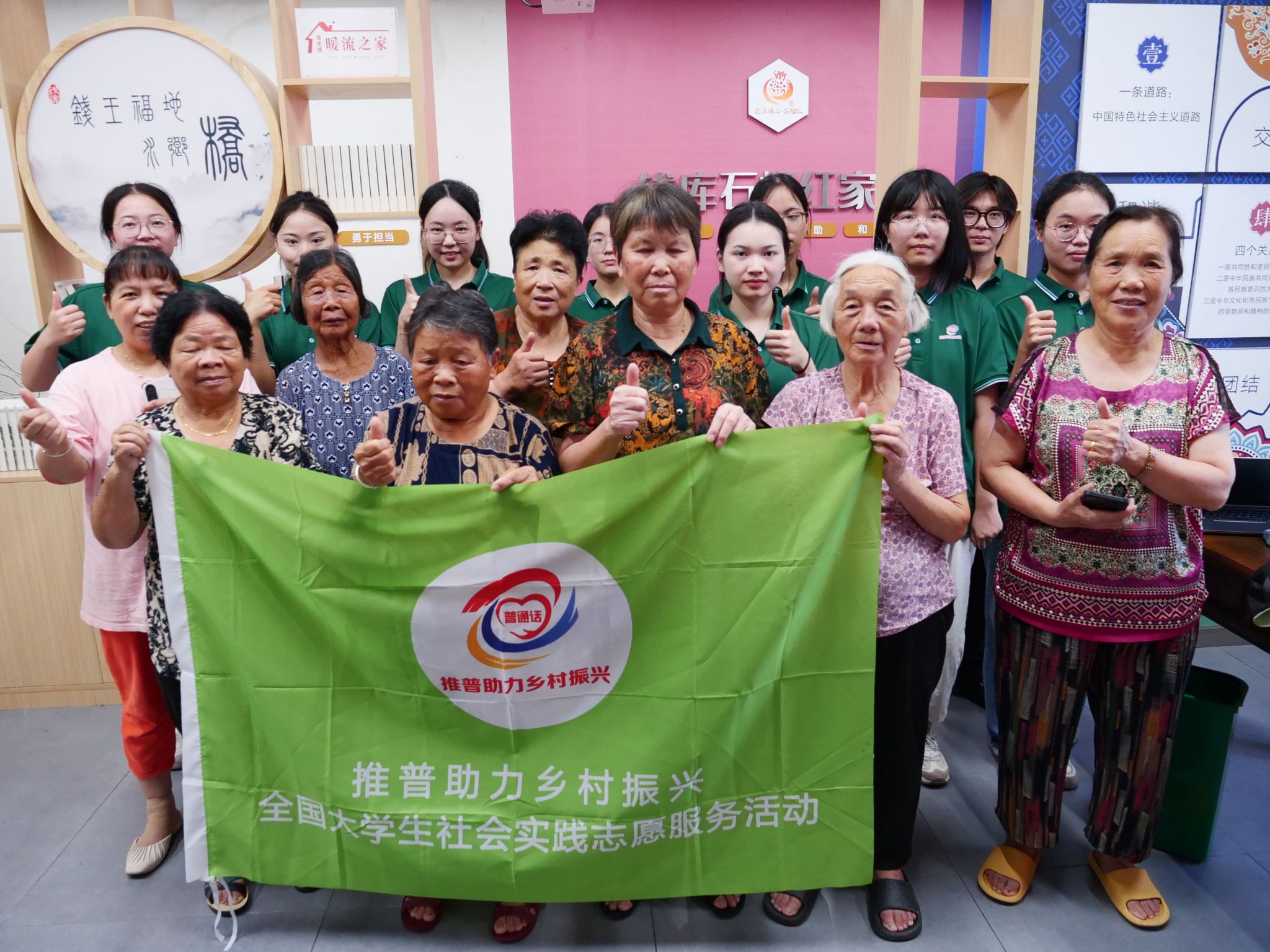 2025年7月15日下午,骄阳似火,吃瓜网 “知语识文”国家通用语言文字推广(苍南)实践队不畏酷暑,来到苍南县项东村文化礼堂,为村里的老年人带来了一场别开生面的普通话推广活动。