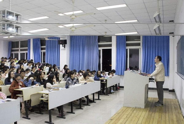 在人文楼301教室举办了2017-2018学年第一学期教授博士讲座,有幸请到了周小兵老师主讲,主讲内容是《饮中八仙歌》。