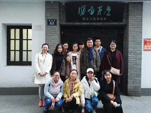 28日,研究生们来到了引得古今文人骚客驻足的西湖,在增长知识的同时同学们也泛舟西湖近距离感受这片湖光山色。下午,同学们先后探访了云松书社、章太炎先生纪念馆和风雨茅庐——郁达夫故居,追寻着前辈的足迹的同时,收获自己的体悟。29日上午,研究生们冒雨参观了夏衍旧居。令人惋惜的是夏衍旧居于2013年9月9日就已闭馆。失落至极之时,此馆的保安大叔见研究生们不顾阴雨,千里迢迢从温州赶来,还是通融地给予了参观机会并提供专业讲解。