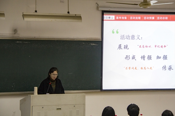 本次团干培训的主题是方案策划大赛,由十个组进行十九大或85周年校庆策划展示。首先上场的第一组,一开篇就以正能量十足的中国红夺人眼球,背景音乐也使人热血沸腾,在座的学员都不约而同地燃起了爱国热情。第二组的学员也别有新意,生动地将一场十九大学习策划比作一场战争的安排,演讲人幽默的话语令台下笑声不断。再来看85周年校庆的活动策划,第七组考虑了晚会上的注意事项,思虑详备,令人惊叹。第八组也不甘示弱,制作精美的幻灯片,详细的预算以及周到的时间安排深入人心,赢得了主席团一致的掌声。可以说,每一组的作品都各有风采,可圈可点,每一组的作品都融入了组员们的集体智慧和心血努力。最后,主席团代表屠婧斓提出修改建议和个人看法,她认为注意事项与事后工作是会被忽略但却是极其重要的,预算成本也要结合实际。最后,本次大赛圆满结束,第八组摘得桂冠,第二组与第七组分别获得第二名,第三名的好成绩。