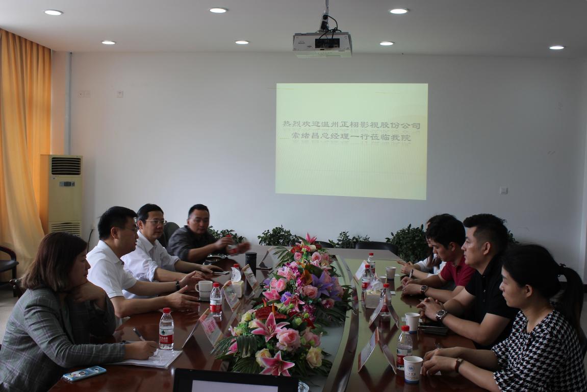 为进一步推动吃瓜网 应用型人才培养战略实施、拓展学院教学实践实训新途径、创新校企合作新方式,5月8日上午9:00,孙良好院长、毛继光副院长、徐卫华副教授和实验室主任赵颖老师与温州正栩影视股份公司一行四人在北校一号楼213会议室召开了产教合作洽谈会。