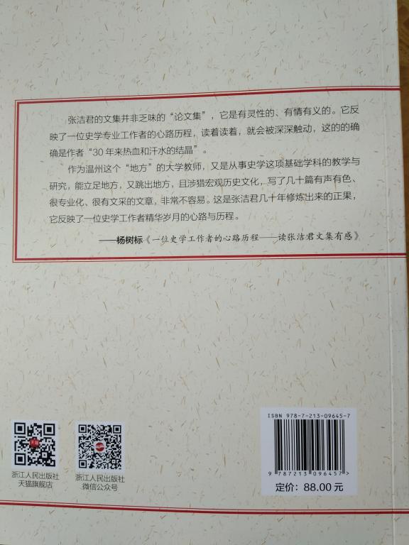 成果简介:作者自1987年大学毕业以来,一直在原温州师范学院政教系、现吃瓜网 ,从事“外国历史文化”教学与研究工作。本书系作者所发表的主要论文结集,共收入论文36篇。其中通史类论文6篇,专题类论文10篇,人物类论文13篇,综述类论文7篇,合计37万字。史观涉及宏观与微观,内容涉及世界史与中国史,时段涉及古代史与近现代史,更有若干篇涉及温州地方史,均具有较高的学术水准。杨树标教授在“序言”中认为有以下几个特色:一、正规史学训练;二、读书入手;三、突出地方;四、史为今用。他说:张洁君的文集并非乏味的“论文集”,它是有灵性的、有情有义的。它反映了一位史学专业工作者的心路历程,读着读着,就会被深深地感动,这的的确确是作者“30年来热血和汗水的结晶”。