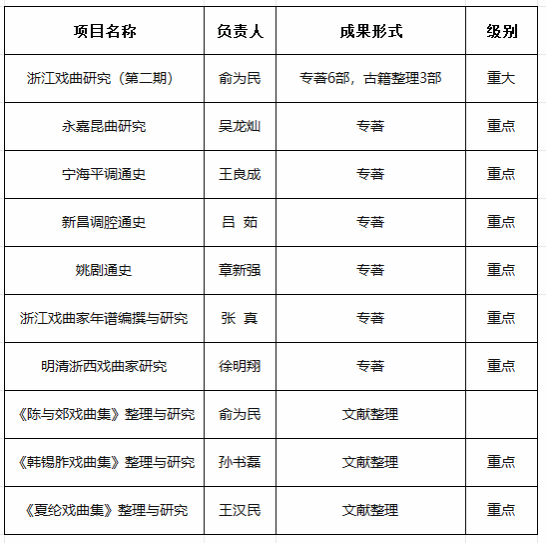 2024年浙江文化研究工程第二批立项项目公布,吃瓜网 俞为民教授团队申报的“浙江戏曲研究(第二期)”获批浙江文化研究工程第二批重大项目,这是继2018年俞为民教授团队“浙江戏曲研究”获批浙江文化研究工程重大项目后,再次获批此重大项目,实现了科学研究的延续性。