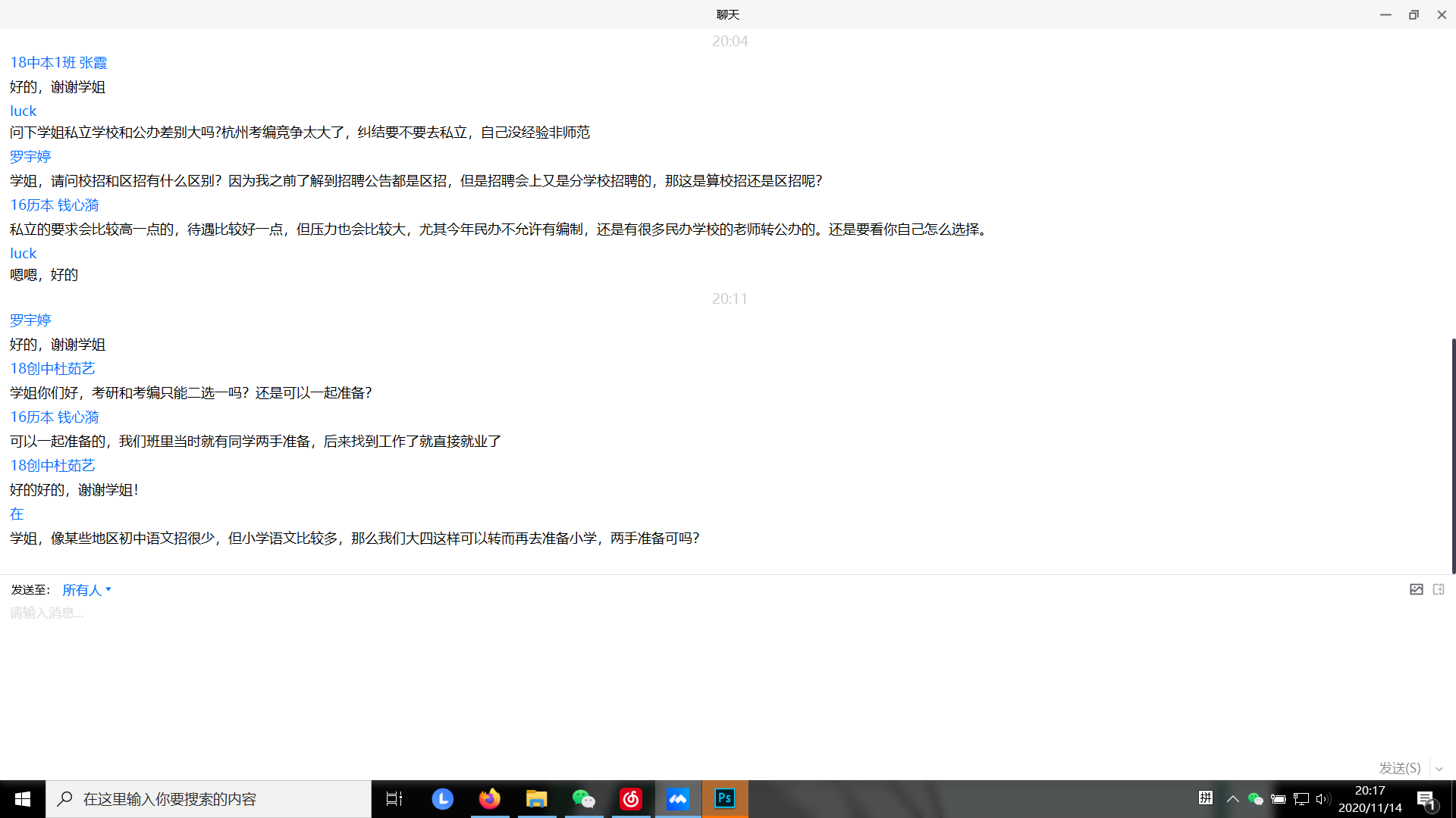 在最后的互动交流环节,校友们对同学们提出的问题进行了认真详细的解答。此次考编云分享,是吃瓜网 2020年下半年就业服务的第二期系列活动,它为同学们搭建了一个与考编成功的学长学姐进行交流的桥梁,有助于同学们了解与考编相关的信息,吸取考编经验,在考编之路上走得更快更稳。