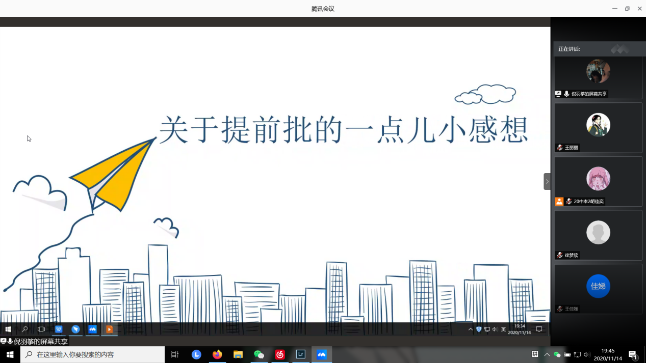 分享会上,李丹萍老师首先说明举办考编云分享的初衷,希望大家能有所收获,并感谢4位优秀校友百忙之中抽出时间来分享经验。随后进入校友分享环节。毕业于16中文1班的王佳颖学姐向大家提出了几点宝贵建议:一是重视专业发展;二是提升教师技能;三是珍惜每一次机会,做好相关准备;四是合理规划时间,学会取舍。16中文2班的何静艳学姐主要分享了如何准备提前批,包括获取提前批信息、提前批的要求、需准备的材料、面试准备的一些细节等。16历史(师范)的钱心漪学姐主要围绕关注招考信息、面试流程解读、备考经验分享三方面展开经验分享。她强调要明确自己就业方向,并向大家分享了板书设计、教案速写的要点以及结构化面试和模拟上课的技巧。毕业于16历史(师范)的倪羽筝学姐 ,以“纯熟的师范技能助你一路升级打怪”为主题进行经验分享,介绍了提前批面试的基本流程,同时向同学们推荐了一些参考教辅用书和教学网站。她建议大家大学期间要重视学习;在面试时,要注重仪容仪表并保持平和的心态。