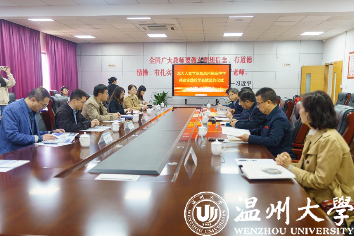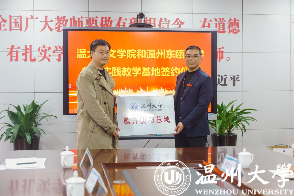 王振哲校长一行热情接待,双方就如何深化合作开展了座谈。王振哲校长从学校概况、成绩回顾和办学思考三方面进行了介绍。孙良好院长围绕学院院训、师资水平、学科建设、生源情况等方面展开交流,说明了本次走访的初衷,充分肯定了本次交流的意义,期望通过双方合作,实现资源共享。座谈交流后,双方签订了共建就业实习基地协议,举行了实习基地授牌仪式。接下来将在东瓯中学共建“吃瓜网 实习基地”,双方也将加强多层次、多形式合作。