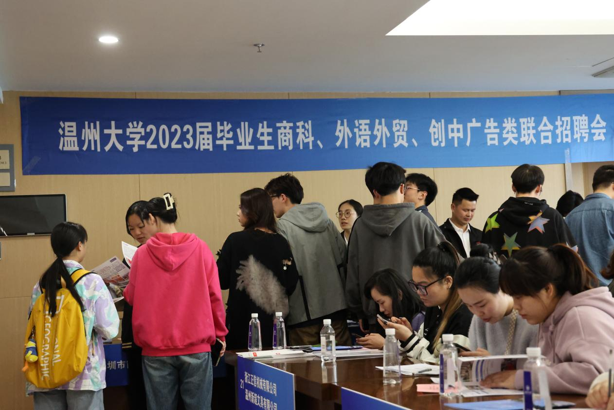 据悉,本次招聘会致力于给未就业的毕业生送来“及时雨”和“定心丸”。活动当天共有65家企业来校招聘,优质校友企业占比近5成,涉及上海、深圳、温州、杭州、台州等多个地域的企业,提供各类高质量就业及实习岗位1200余个。除企业人才招聘以外,招聘会也设置了留温政策宣传与咨询窗口,详细展示了温州高校毕业生招引“510行动计划”的具体内容,为留温发展感兴趣的毕业生提供相关政策、信息的帮助与支持。