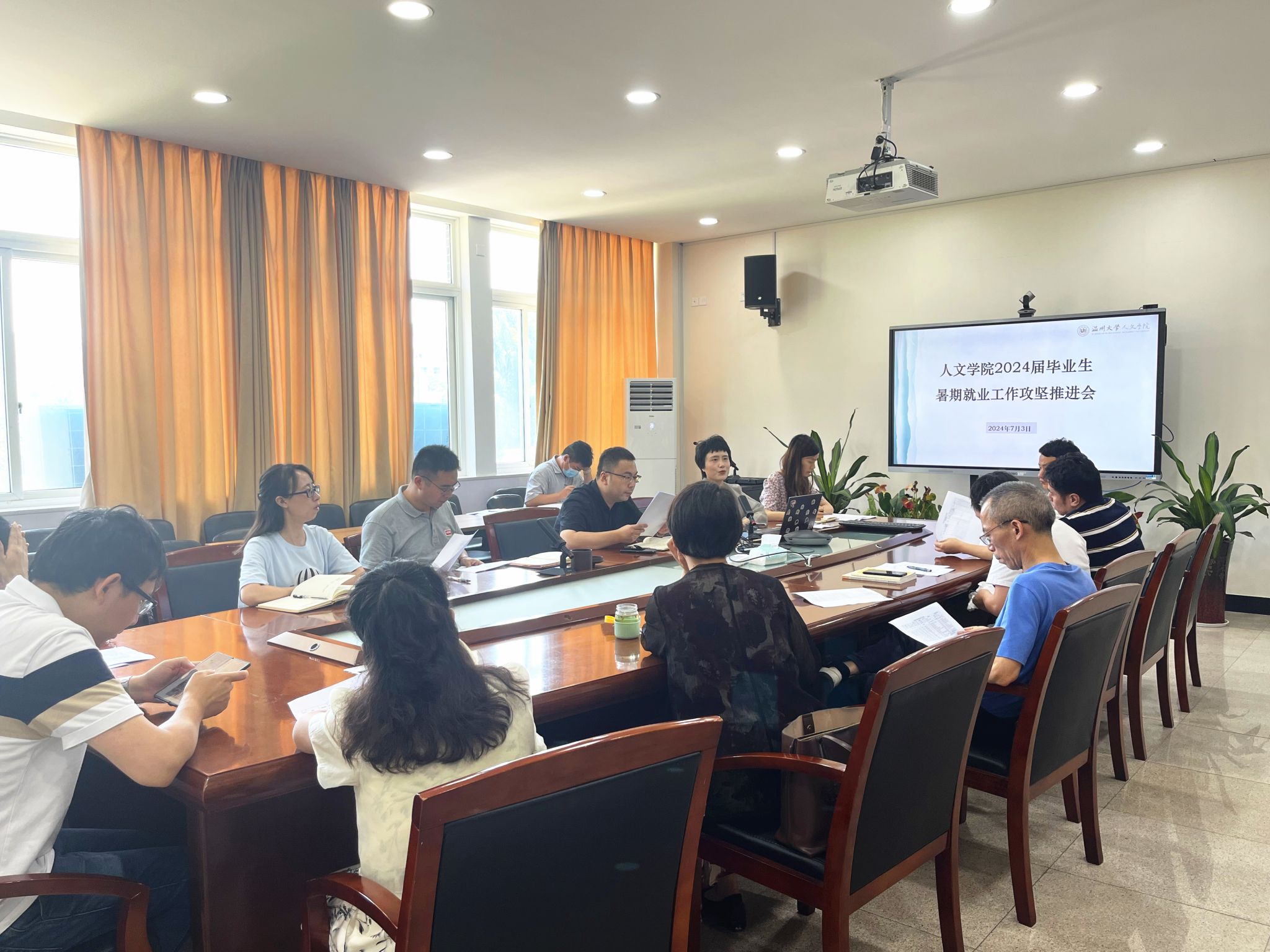 为进一步推动学院2024届毕业生就业工作,促进毕业生更高质量更加充分就业,7月3日下午,吃瓜网 在人文楼213会议室召开了2024届毕业生暑期就业工作攻坚推进会,此次会议旨在深入贯彻落实教育部、省教育厅及学校关于高校毕业生就业工作的会议精神,抢抓就业冲刺期,明确后续工作重点,凝聚全院力量,共谋就业新篇章。学院领导班子全体成员、各专业系主任、硕士点负责人、毕业班班主任、学工办辅导员出席会议。会议由院党委副书记黄玮主持。