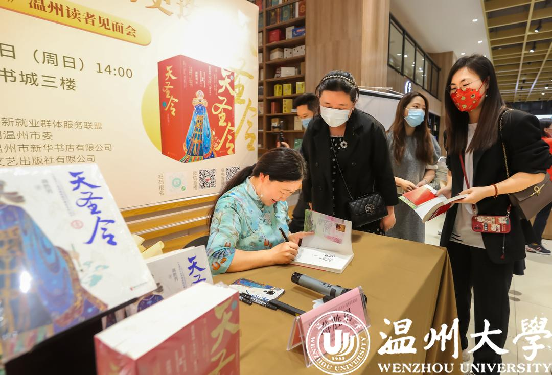 5月1日下午,在温州书城“浙版大讲堂”的现场,女性大历史小说的优秀代表蒋胜男以新作长篇历史小说《天圣令》为例,为温州读者带去了一场宋韵与瓯风相融合的讲座,分享了自己作品中的宋韵文化元素及其背后的历史选择,探讨宋韵文化的品牌价值。据悉,本次活动由温州市新就业群体服务联盟的指导,共青团温州市委、浙江温州市新华书店有限公司、浙江文艺出版社有限公司主办,温州市图书馆、温州日报文化中心协办。