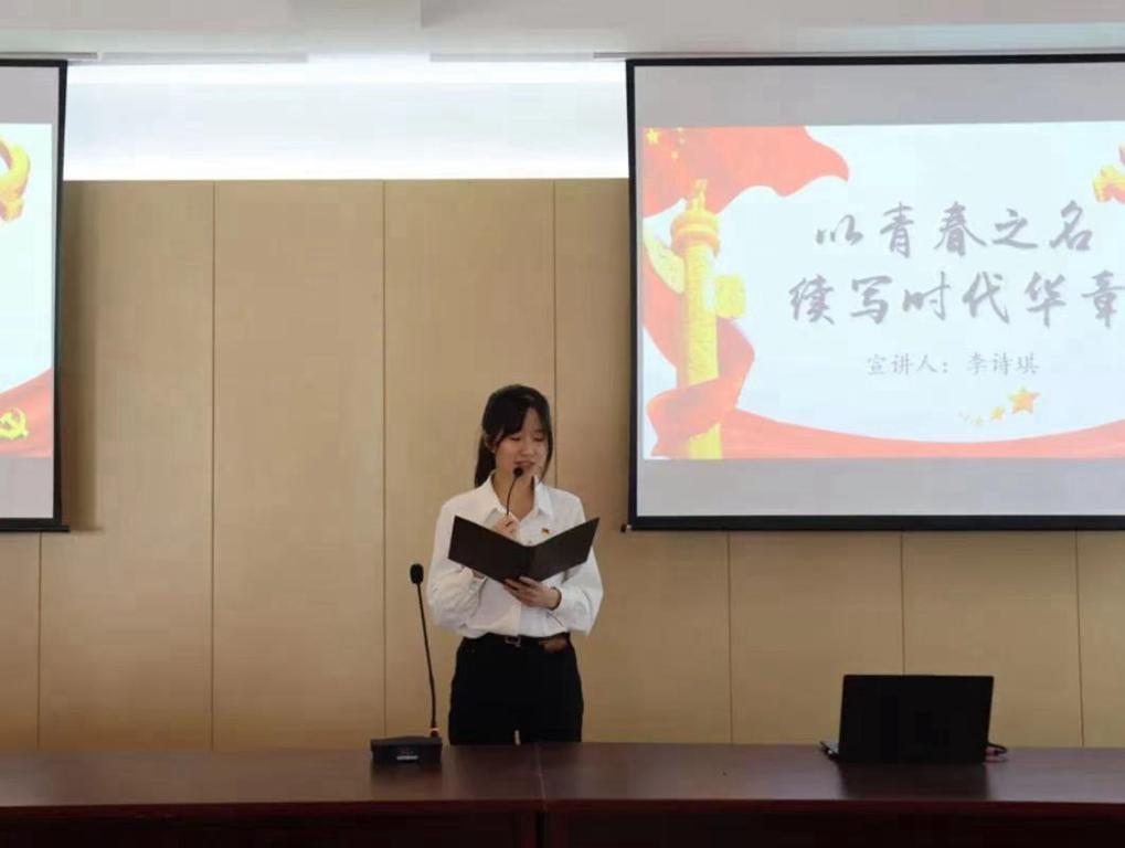 宣讲人李诗琪同志则继续延续“浙南火种”精神,以近现代温州发展为切入点,讲述了从92年前的《目前的浙南革命形势和党的任务》到“八八战略”,从2021年的关于制定“十四五”规划和2035年远景目标建议到温州高校学子踊跃报名2022年杭州亚运会志愿者。在宣讲人李诗琪同志慷慨激昂的宣讲当中,在座的各位青年看到了代代国人如何用青春书写大国崛起的华章。