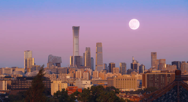 一轮满月挂在城市夜空